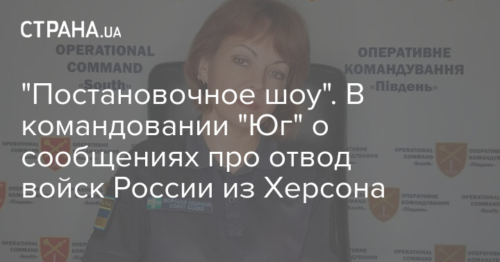 "Это постановочное шоу". Так спикер Оперативного командования "Юг" Наталья Гуменюк назвала в эфире телеканала "Дождь" заявления об отводе российских войск из Херсона.