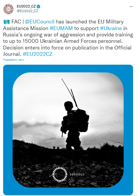 Европейский Союз официально запустил тренировочную миссию для украинских военных. В рамках миссии будет подготовлено до 15 тысяч военных.