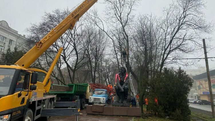 В Днепре демонтировали памятник писателю Максиму Горькому, который вместе со снесенными монументами Пушкину и Ломоносову перенесут на территорию КП "Зооконтроль"