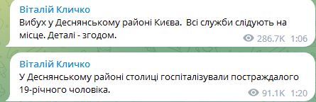 06.00 Ночью был взрыв в Деснянском районе Киева. В результате был госпитализирован 19-летний мужчина.