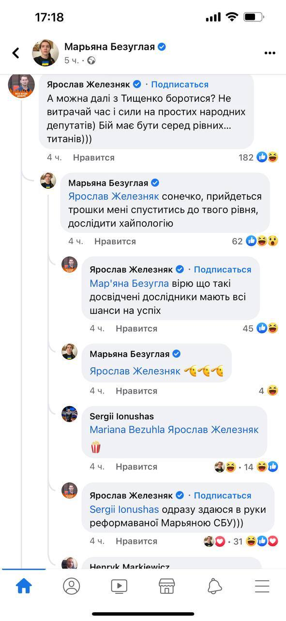 "У них синдром недержания информации". В Facebook вспыхнул конфликт Безуглой с Гончаренко и Железняком