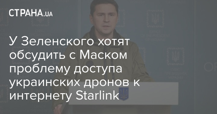 Советник главы Офиса президента Михаил Подоляк считает необходимым обсудить с американским миллиардером Илоном Маском проблему доступа украинских военных беспилотников к сети Starlink.