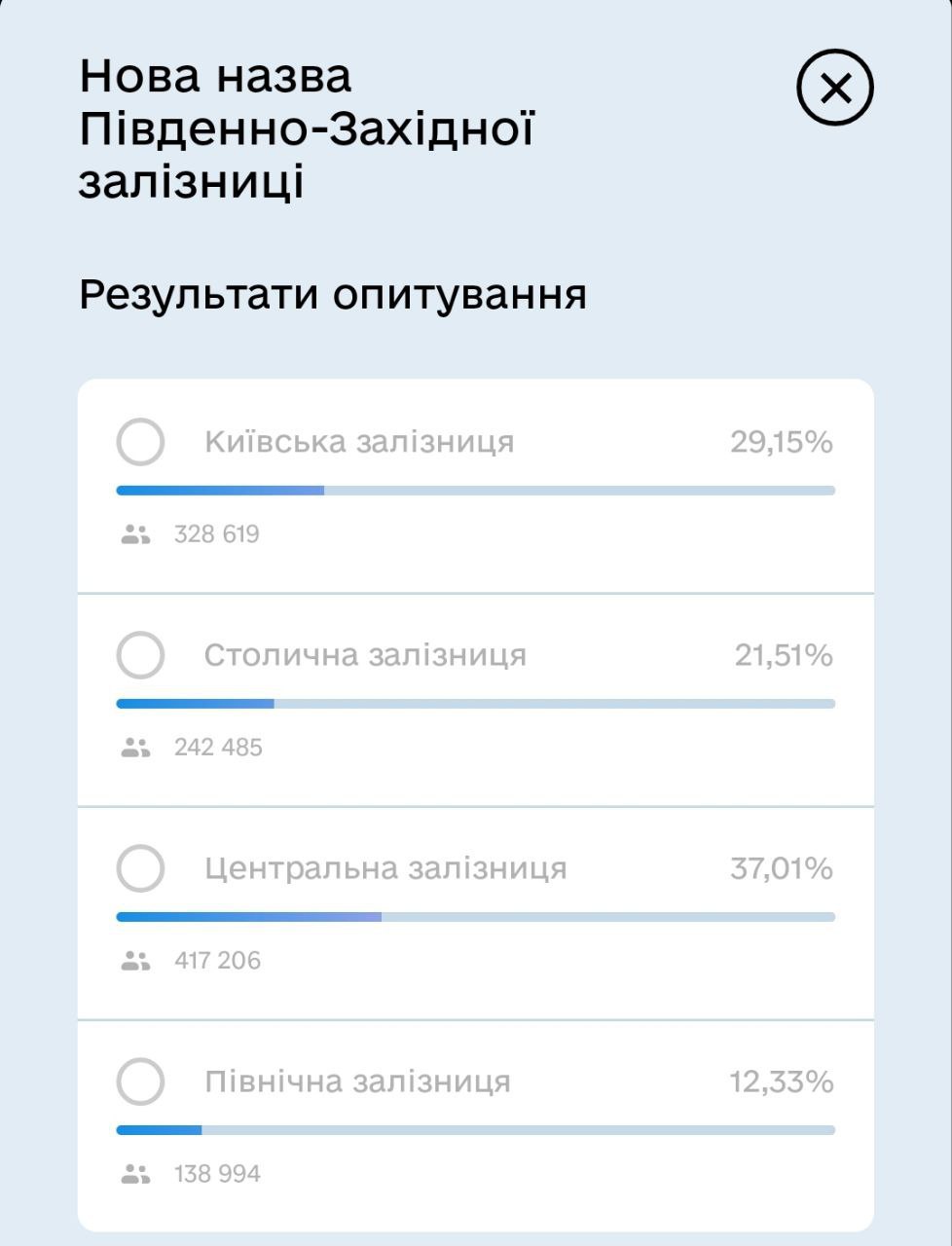 Теперь в Минцифры предлагают переименовать и Южную железную дорогу. Варианты - Харьковская, Слобожанская, Слободская и Восточная.