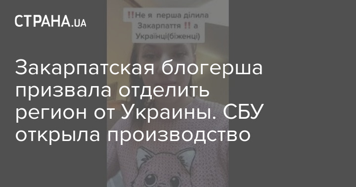 Закарпатская блогерша призвала отделить регион от Украины. СБУ открыла производство