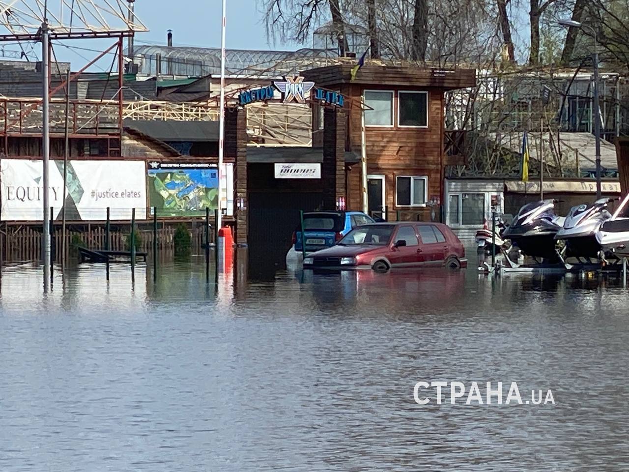 Автомобили плавают на парковке, а бизнес спасает имущество. Фоторепортаж из затопленного киевского парка