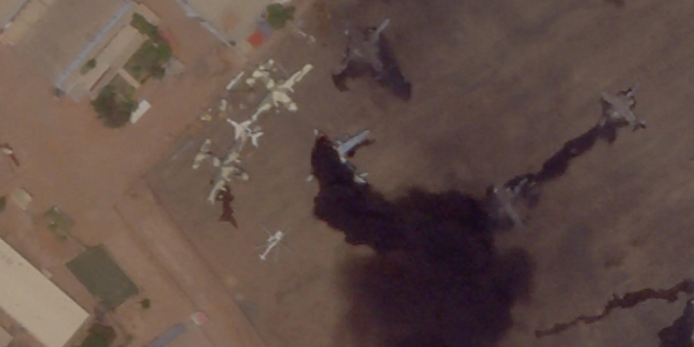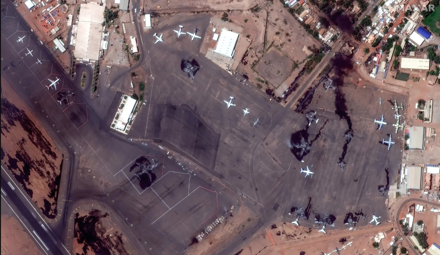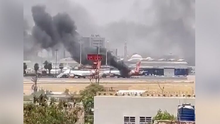 Boeing 737 украинского лоукостера SkyUp, находящийся в аэропорту Хартума, загорелся во время противостояний 15 апреля.