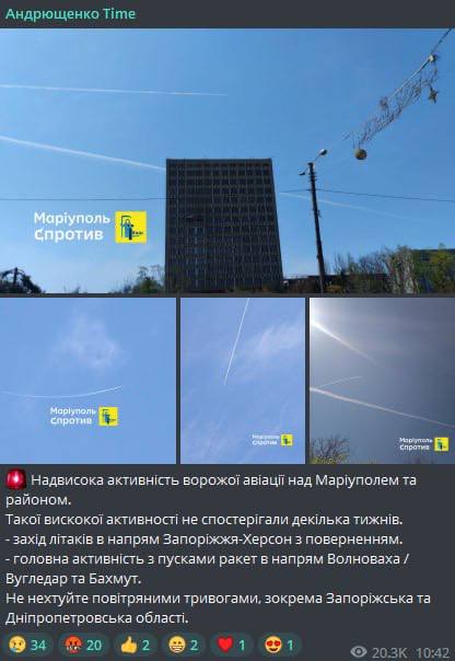 По его словам, уже несколько недель не наблюдалось такой активности авиации над Мариуполем и районом.
