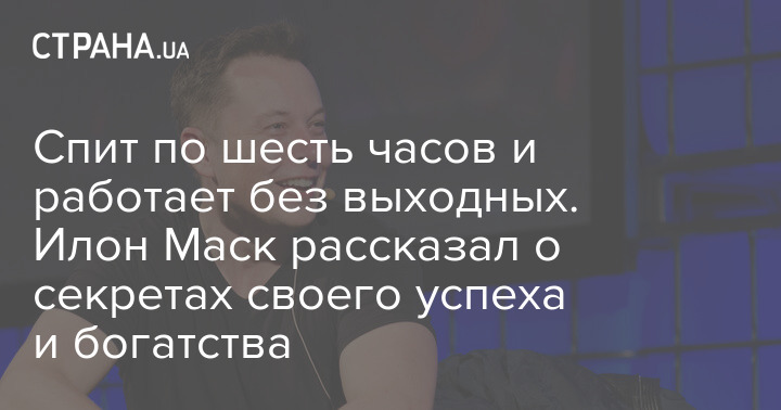 Спит по шесть часов и работает без выходных. Илон Маск рассказал о секретах своего успеха и богатства
