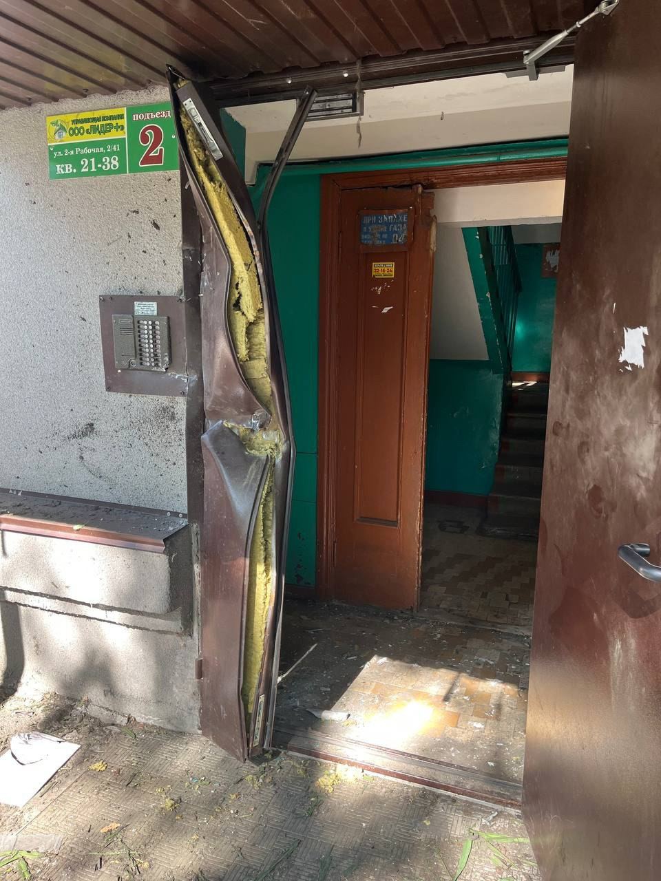 В Курске заявили, что после атаки беспилотников был поврежден подъезд многоэтажки