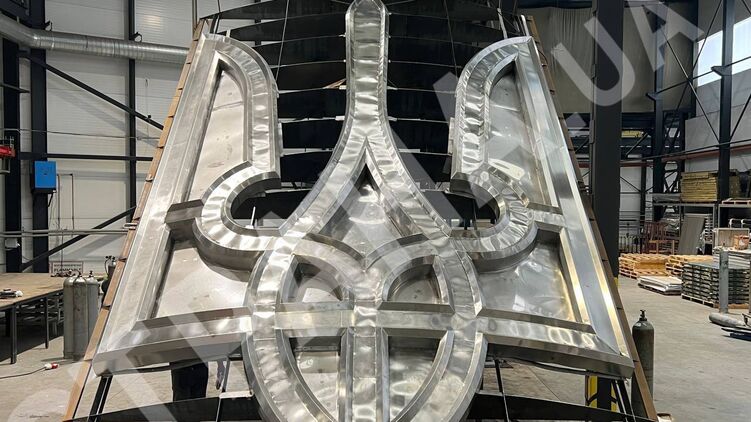 "Герб изготавливали и проектировали круглосуточно на протяжении четырех недель. Были задействованы больше 150 человек: технологи, конструкторы, полировщики и сварщики", — рассказали сотрудники.