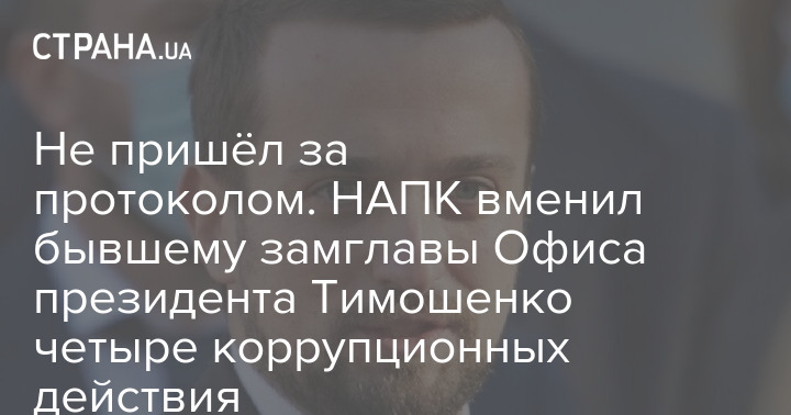 Не пришёл за протоколом. НАПК вменил бывшему замглавы Офиса президента Тимошенко четыре коррупционных действия