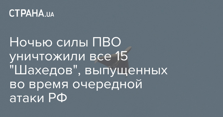 Ночью силы ПВО уничтожили все 15 "Шахедов", выпущенных во время очередной атаки РФ