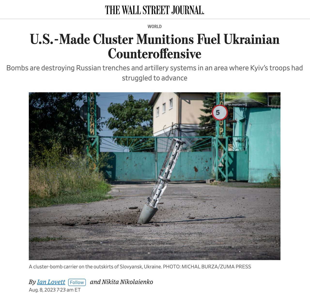Импульс украинскому наступлению дала поставка американских кассетных боеприпасов - The Wall Street Journal