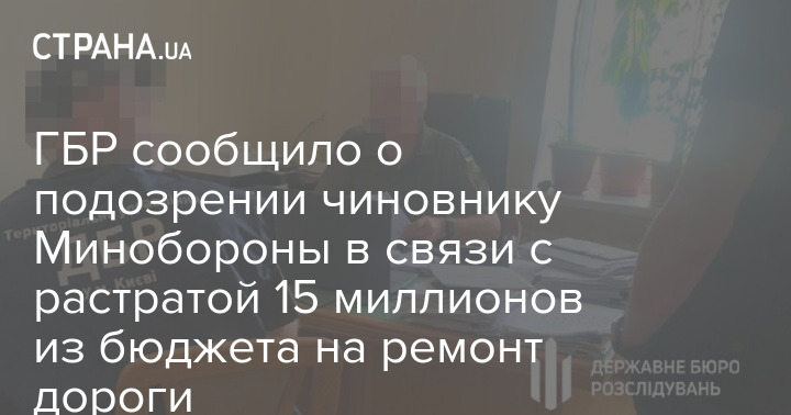 Государственное бюро расследований (ГБР) сообщило о подозрении заместителю начальника департамента финансов Минобороны Украины. По данным следствия, из-за чиновника в 2017 году государство потеряло более 15 млн гривен на ремонте дороги.