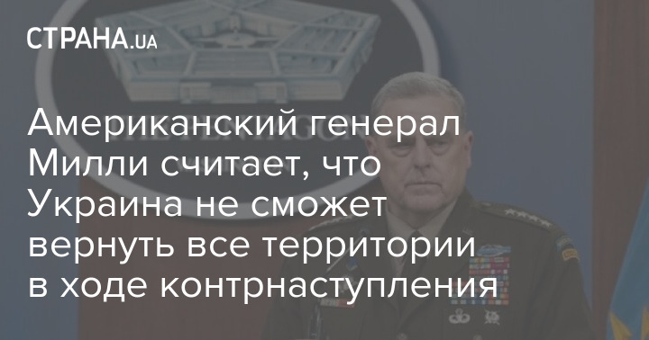 Американский генерал Милли считает, что Украина не сможет вернуть все территории в ходе контрнаступления