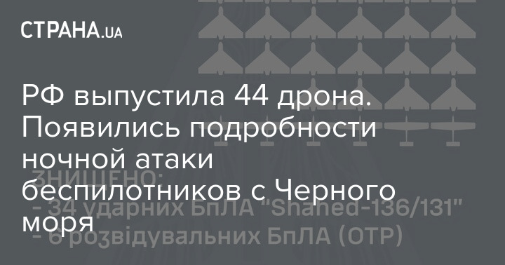 Во время ночной атаки беспилотников РФ выпустила 44 ударных дрона.