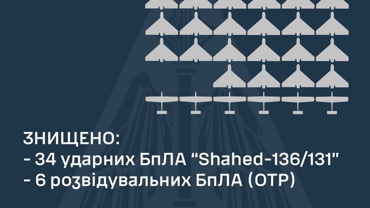 Было уничтожено 34 "Шахеда" и 6 разведывательных БПЛА