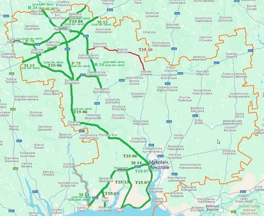 - Т 15-06 на отрезке от Николаева до пгт Врадиевка.