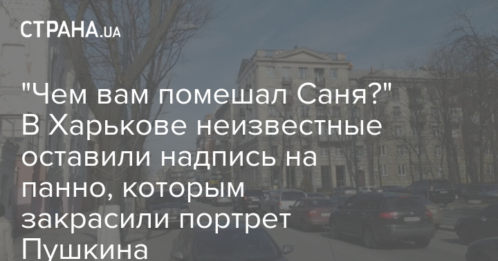 "Чем вам помешал Саня?" В Харькове неизвестные оставили надпись на панно, которым закрасили портрет Пушкина