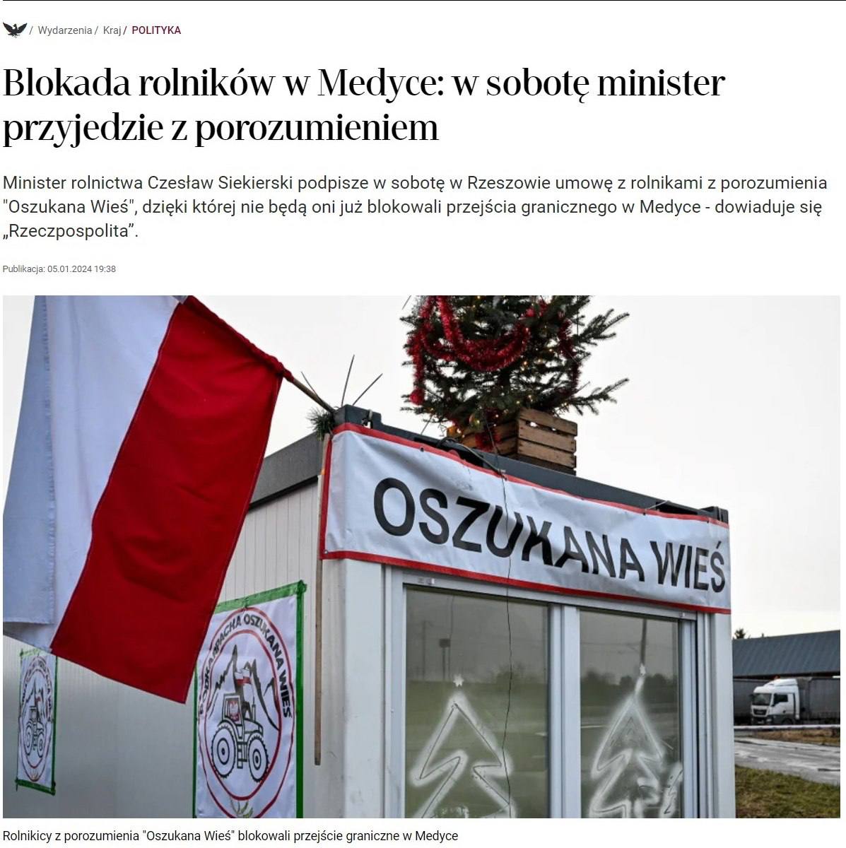 Правительство Польши, вероятно, подпишет соглашение с фермерами для прекращения блокады украинской границы в Медике.