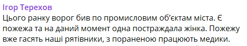 В свою очередь мэр Харькова Игорь Терехов сообщил, что в городе были прилеты по промышленным объектам.