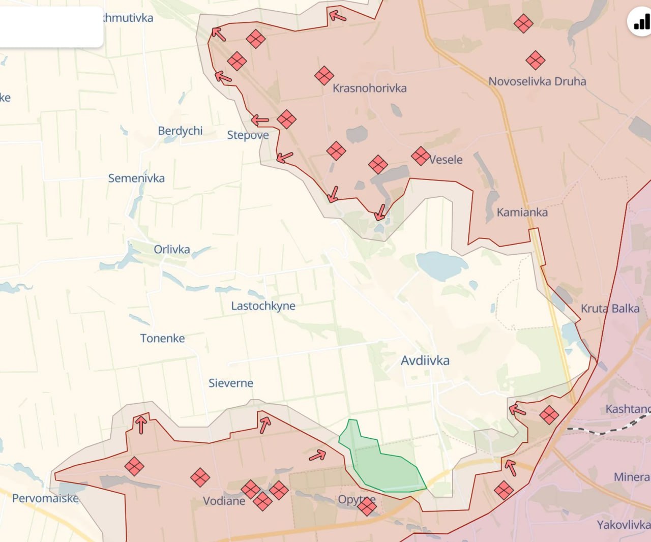 Российские паблики пишут, кроме прочего, о продвижении армии РФ со стороны Каменки (на северо-восток от Авдеевки) до начала улиц Колосова и Леваневского.