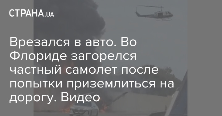 Врезался в авто. Во Флориде загорелся частный самолет после попытки приземлиться на дорогу. Видео
