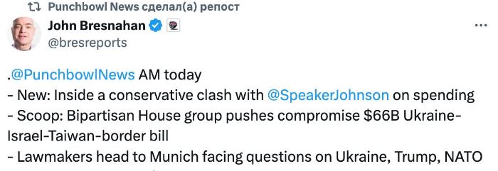Об этом сообщает сооснователь издания Punchbowl News Джон Бреснахан.