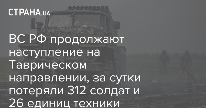 ВС РФ продолжают наступление на Таврическом направлении, за сутки потеряли 312 солдат и 26 единиц техники