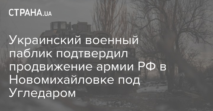 Украинский военный паблик подтвердил продвижение армии РФ в Новомихайловке под Угледаром