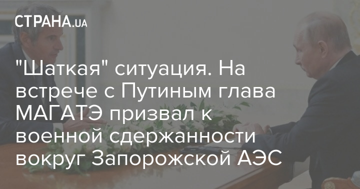 "Шаткая" ситуация. На встрече с Путиным глава МАГАТЭ призвал к военной сдержанности вокруг Запорожской АЭС