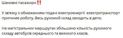 Также в Одессе из-за ночного удара по энергетике снова остановили движение городского электротранспорта.