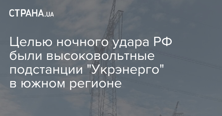 Целью ночного удара РФ были высоковольтные подстанции "Укрэнерго" в южном регионе