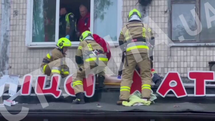 В Соломенском районе Киева женщина выпала из окна. При попытке суицида задержан голый мужчина. Видео и фото
