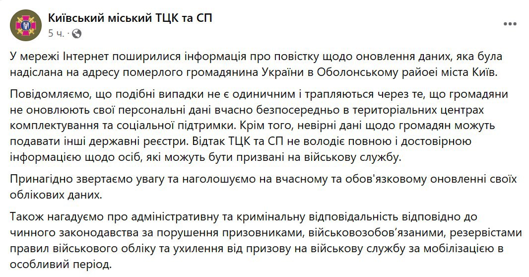 Кроме того, как добавили в ТЦК, неверные данные могут подавать другие государственные реестры.