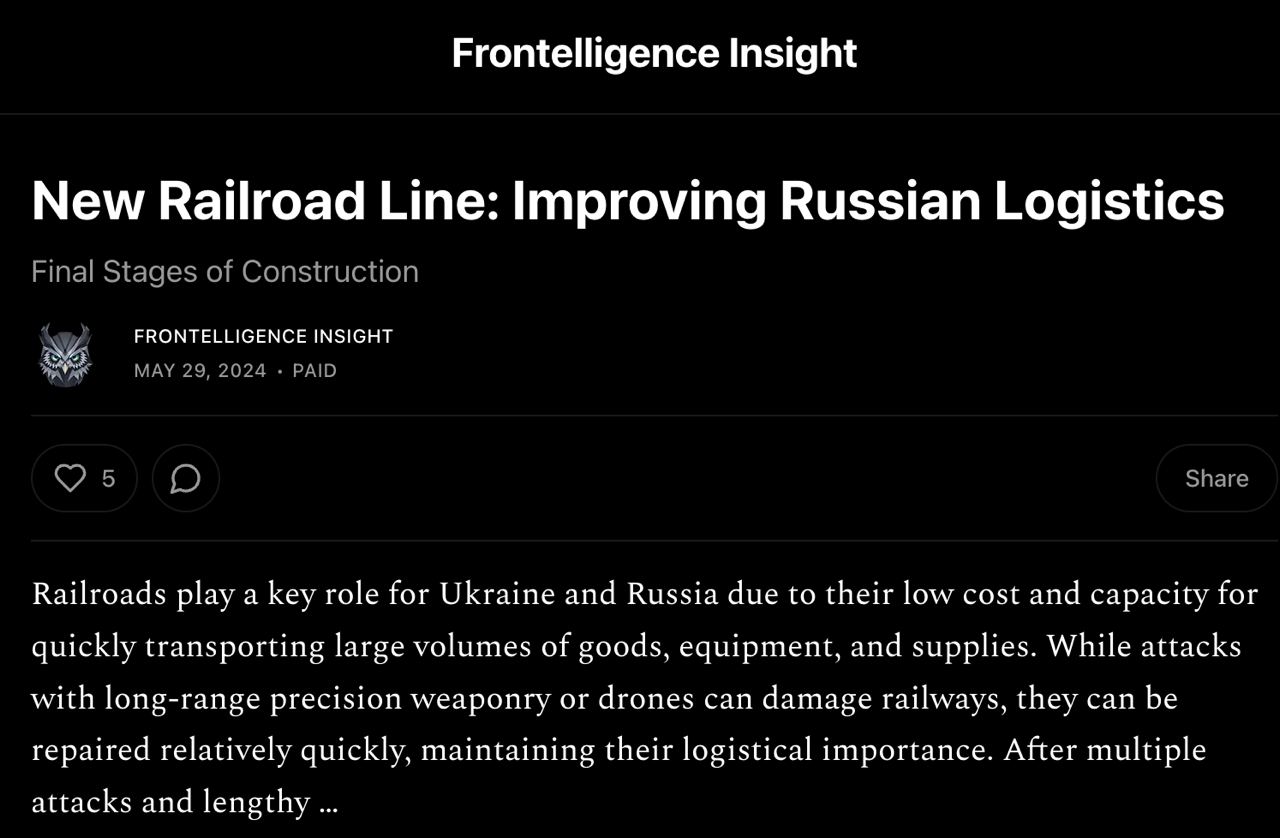 Ранее британская разведка сообщала, что Россия строит железную дорогу через оккупированные территории Украины для альтернативной возможности доставки военной техники.