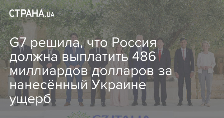 Лидеры стран G7 требуют от Москвы выплатить 486 миллиардов долларов за ущерб, нанесённый Украине в результате боевых действий.