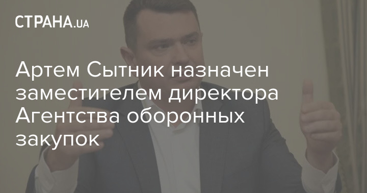 Бывший глава Национального антикоррупционного бюро и экс-заместитель главы Нацагентства по предотвращению коррупции Артем Сытник назначен заместителем директора Агентства оборонных закупок.