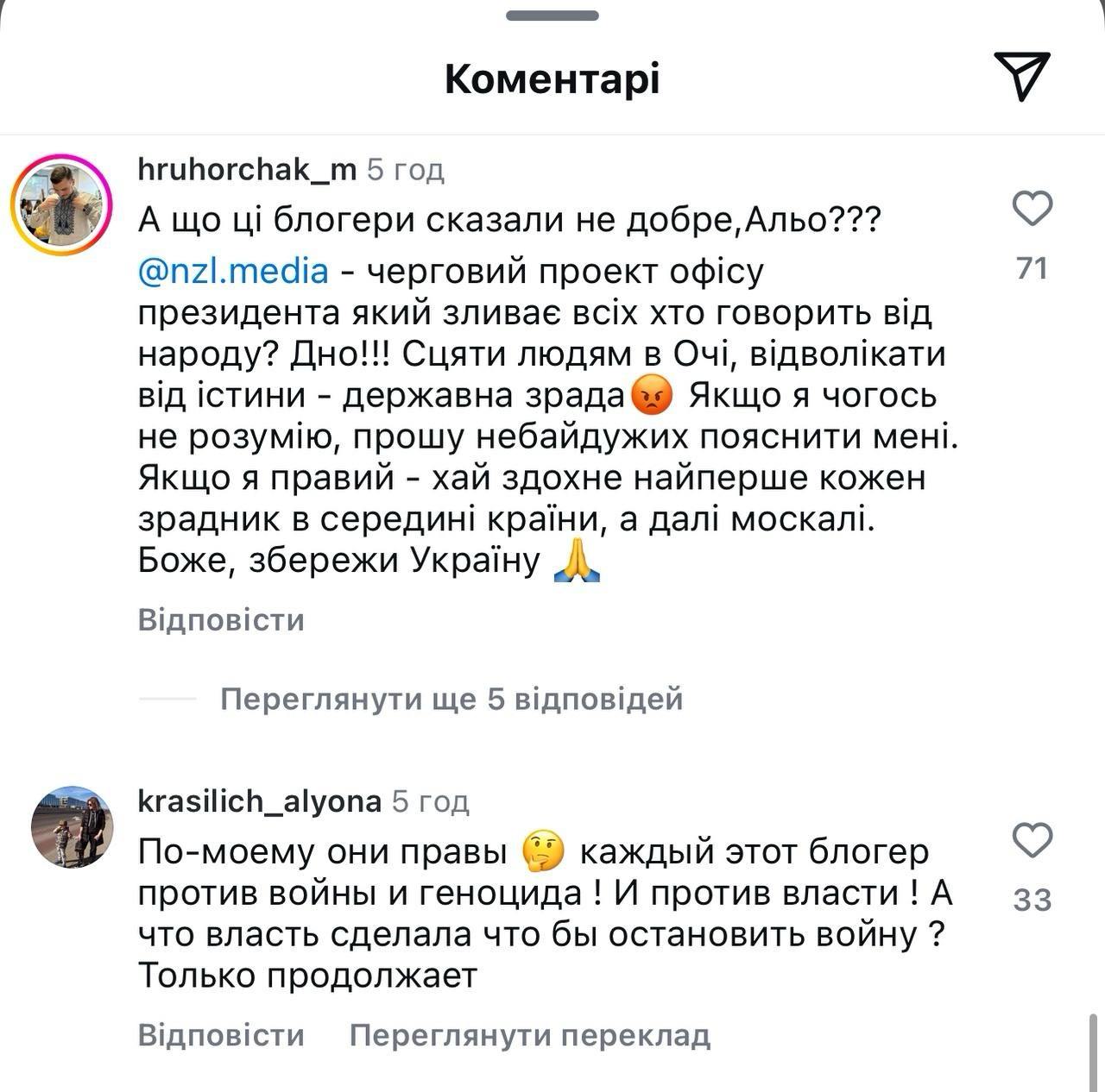 Однако нашлись и такие, кто не поддержали высказываний блогеров и призвали СБУ вмешаться в ситуацию: "Какие же мрази. Где СБУ? Куда смотрит? Это же статья: посягательство на территориальную целостность и государственный суверенитет. Им надо срок дать за это".