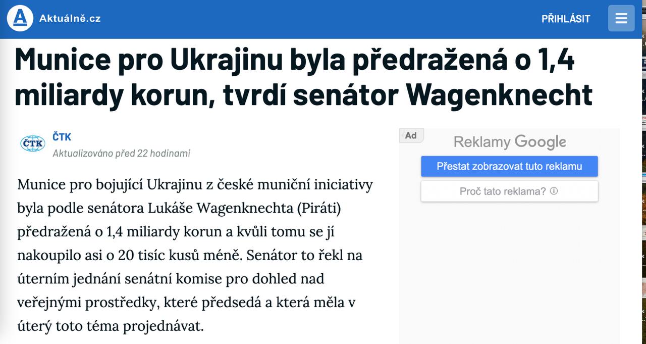 Он также подчеркнул, что информацию проверил профильный комитет украинского парламента при участии Министерства обороны. Еще он сообщил, что стоимость второй части поставки в 80 000 боеприпасов рискует быть завышена на 505 миллионов крон.