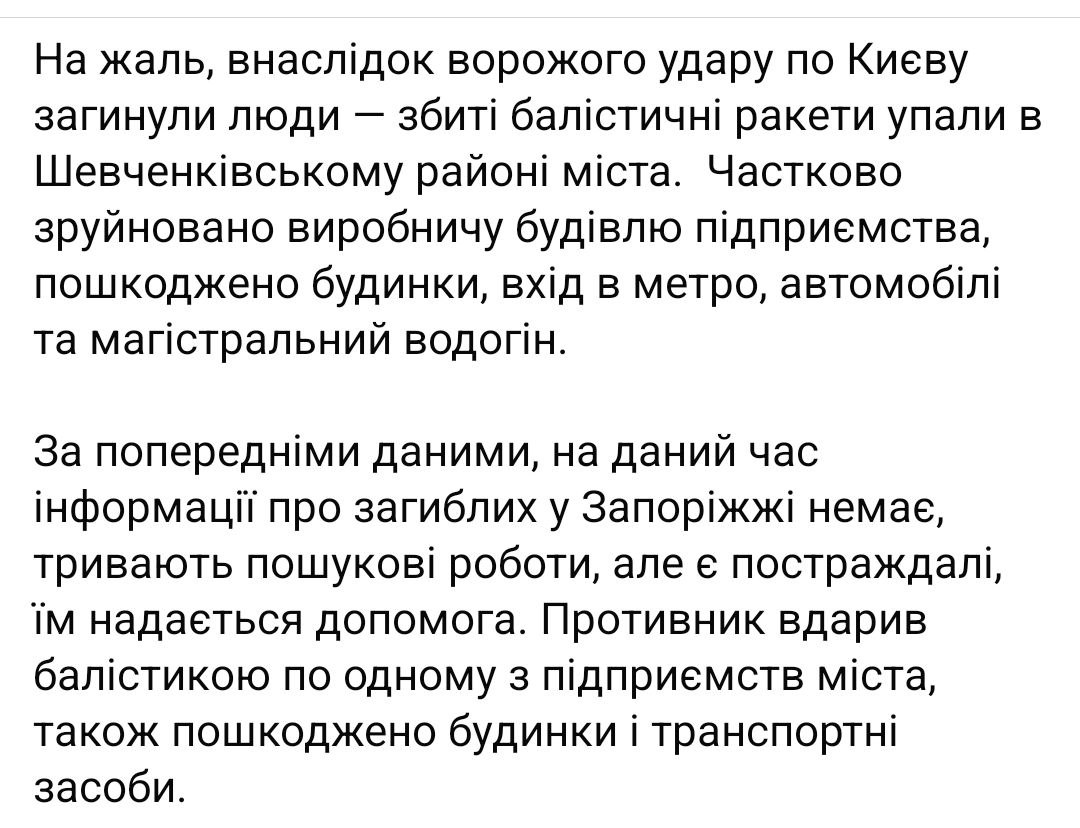 В Воздушных силах ВСУ сообщили, что Россия запустила по Украине четыре "Искандера" (либо его северокорейского аналога KN).