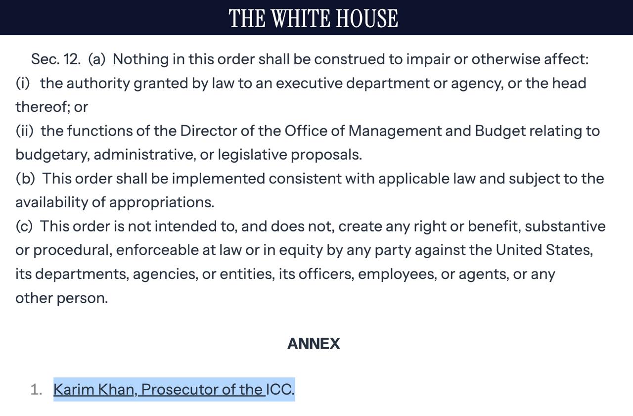 "Я, Дональд Трамп, президент США, считаю, что Международный уголовный суд, учрежденный Римским статутом, совершил незаконные и необоснованные действия, направленные против Америки и нашего близкого союзника Израиля. МУС без законных оснований заявил о своей юрисдикции и начал предварительные расследования в отношении персонала США и некоторых их союзников, включая Израиль, и еще больше злоупотребил своей властью, выдав необоснованные ордера на арест в отношении премьер-министра Израиля Биньямина Нетаньяху и бывшего министра обороны Йоава Галланта. МУС не имеет юрисдикции в отношении США или Израиля, поскольку ни одна из стран не является участником Римского статута или членом МУС", - говорится в обосновании санкций.