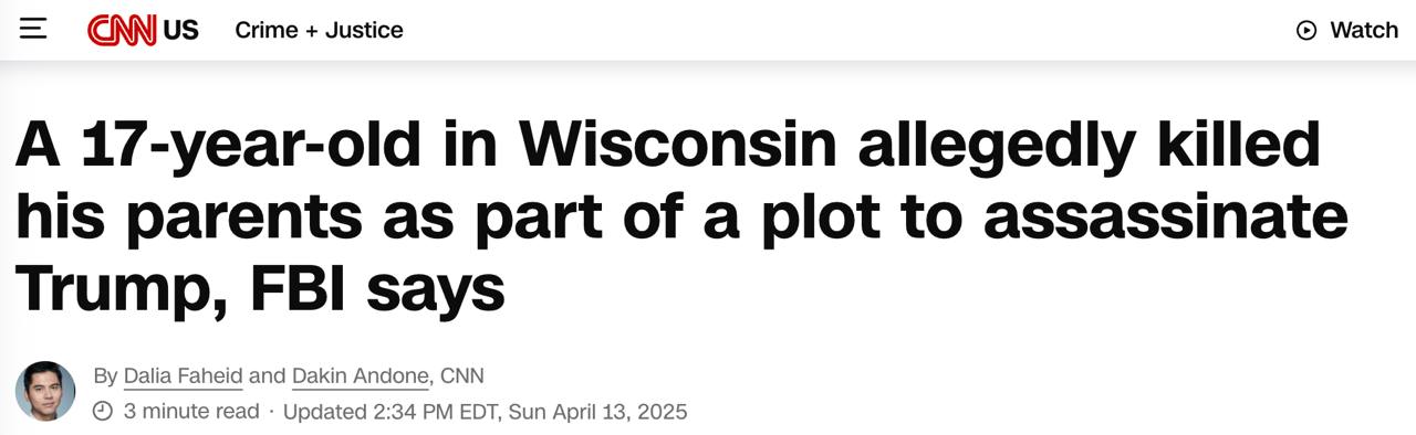 В штате Висконсин начался судебный процесс над 17-летним юношей Никитой Касапом. Он убил свою мать и отчима и планировал убить президента США Дональда Трампа.