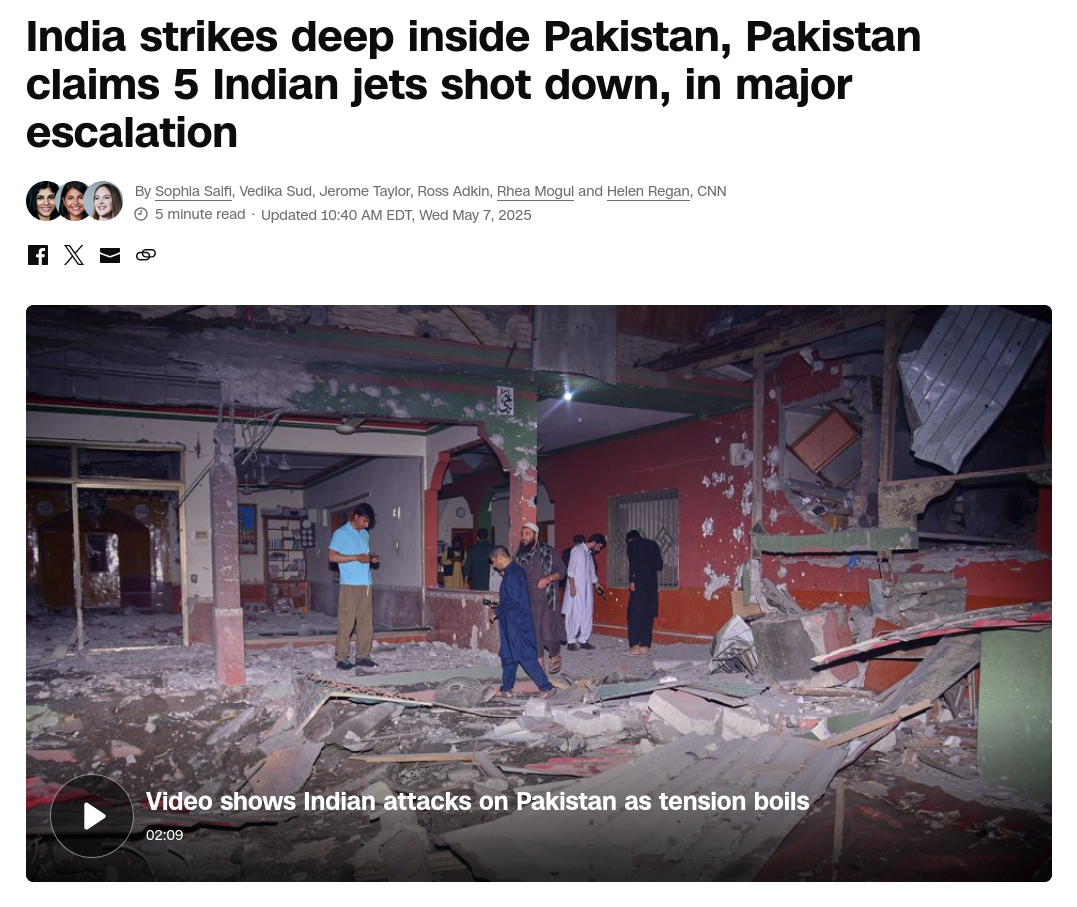 Госдепартамент США уже призвал Индию и Пакистан к деэскалации. Американский президент Дональд Трамп назвал вооружённый конфликт соседствующих стран "позором" и призвал к его скорейшему завершению.