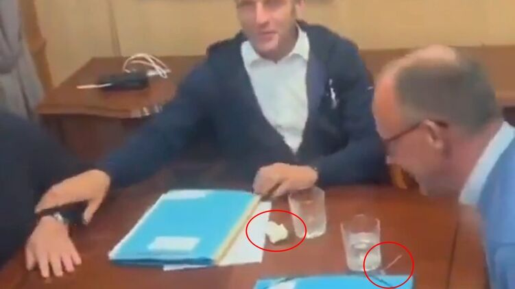 Так спикер российского Министерства иностранных дел Мария Захарова прокомментировала видео, на котором президент Франции убирает со стола, за которым сидят Мерц, Туск и Стармер, белый пакетик. А Мерц прячет в руках стеклянный предмет.