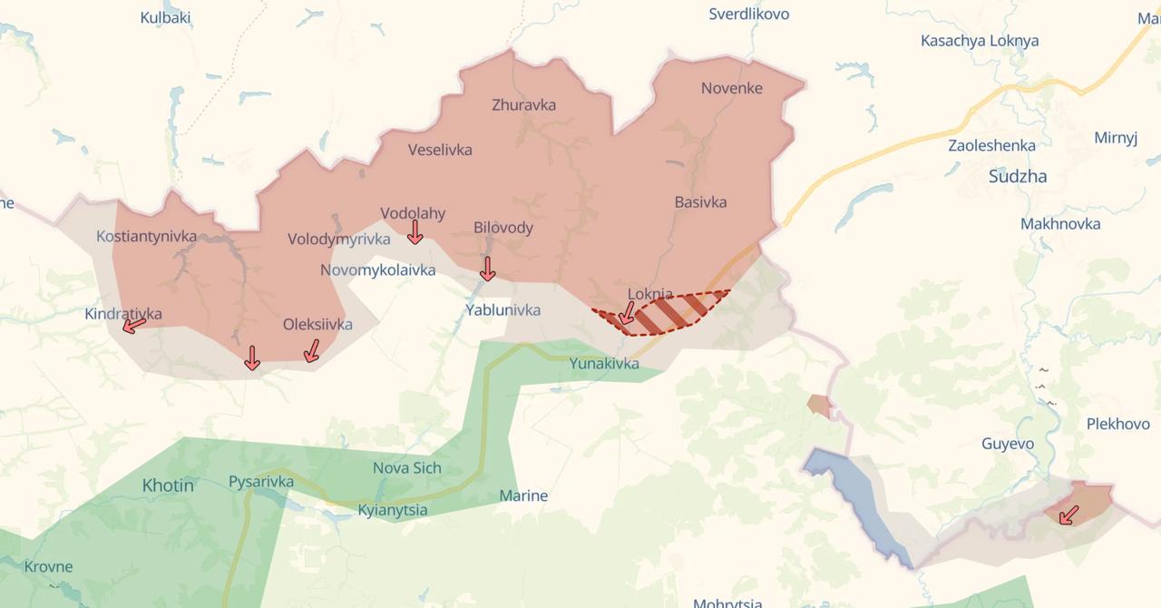 Накануне россияне захватили Кондратовку и Алексеевку и закрепились на трассе Сумы - Суджа выше Юнаковки, сообщает Deep State.