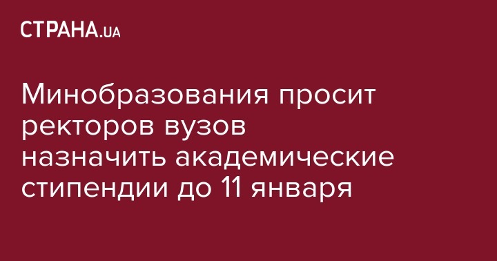 Министерство образования и науки Украины разослало ректорам украинских вузов III и IV уровней аккредитации письма с требованием о начислении академических стипендий студентам до 11 января. Об этом говорится на сайте ведомства.