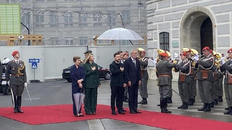 Зеленский прибыл с тайным визитом в Вену и во время встречи с президентом Австрии оставил жену мокнуть под дождем