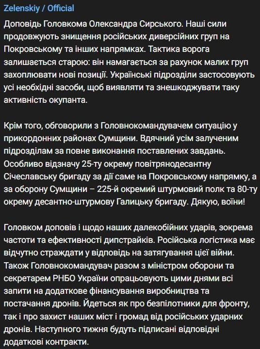 "Главнокомандующий вместе с министром обороны и секретарем СНБО Украины прорабатывают на днях все запросы на дополнительное финансирование производства и поставку дронов. Речь идет как о беспилотниках для фронта, так и о защите наших городов и общин от российских ударных дронов", - написал Зеленский.