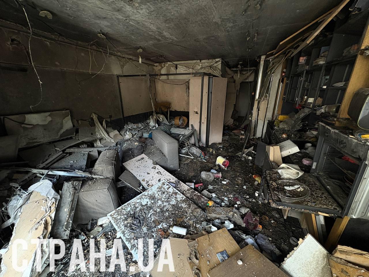 По словам местных жителей, в этот раз упали обломки. Полностью выгорели два этажа, где находились коммерческие помещения и жилые квартиры. Повреждены ещё три этажа и автомобили во дворе.